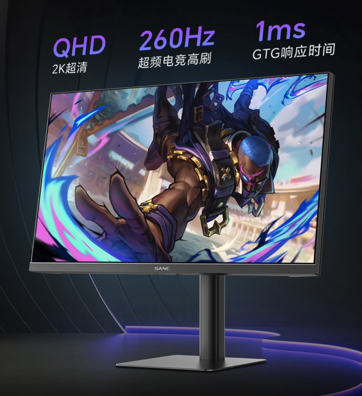SANC G4Q以2K260Hz的超高刷性能,可以极大的挑战你的显卡,每秒260帧的画面也带来了更细腻丝滑的游戏表现,配合1毫秒的GTG极速响应时间,轻松解决传统显示器的运动模糊和延迟,一枪一个不吱声,犹如开挂般爽快。