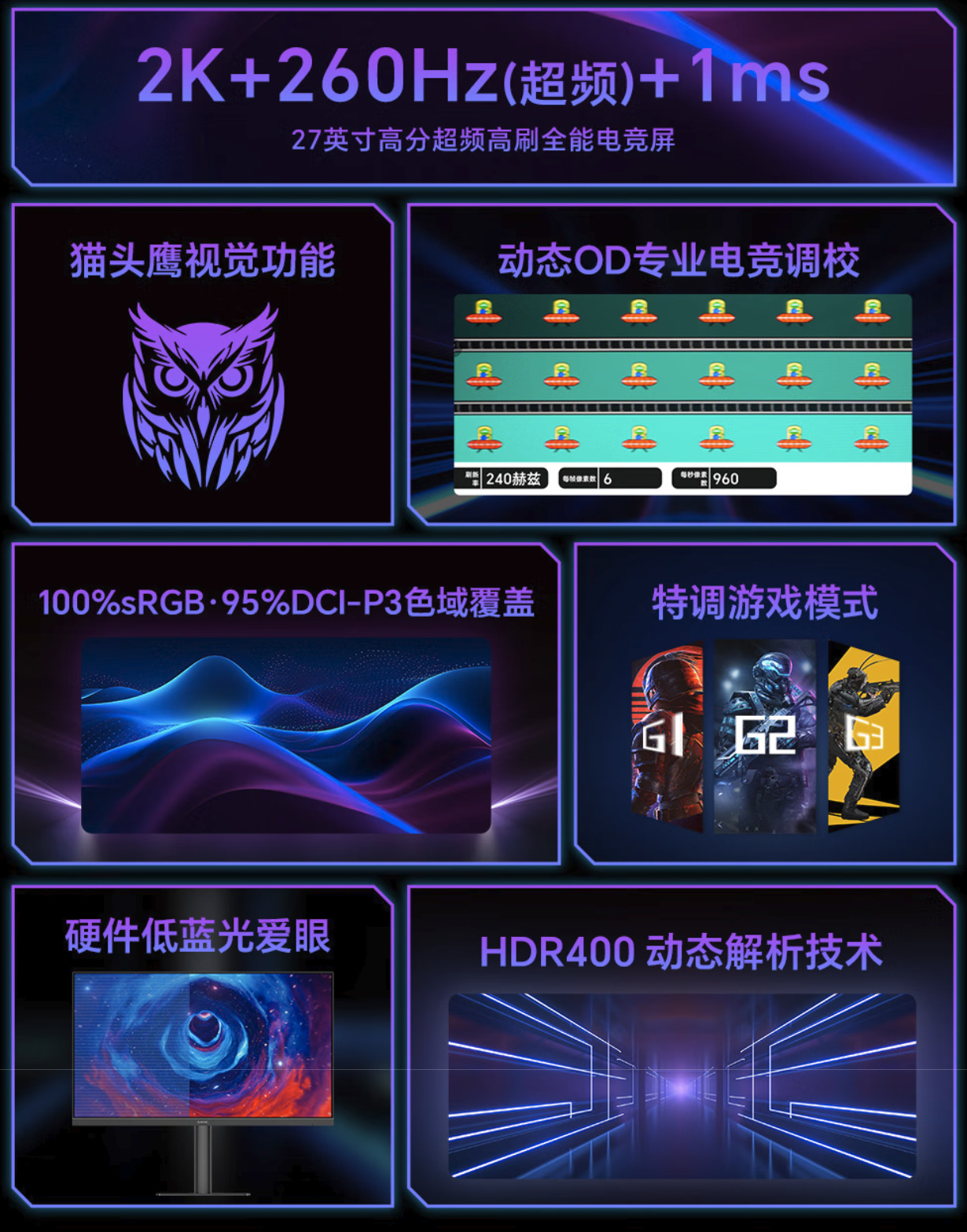 增强版作为一台2K 260Hz高刷、FastIPS面板的电竞游戏显示器,它的价格只要900多,对于手握千元预算、渴望2K高刷的玩家们可谓救世主般的存在。