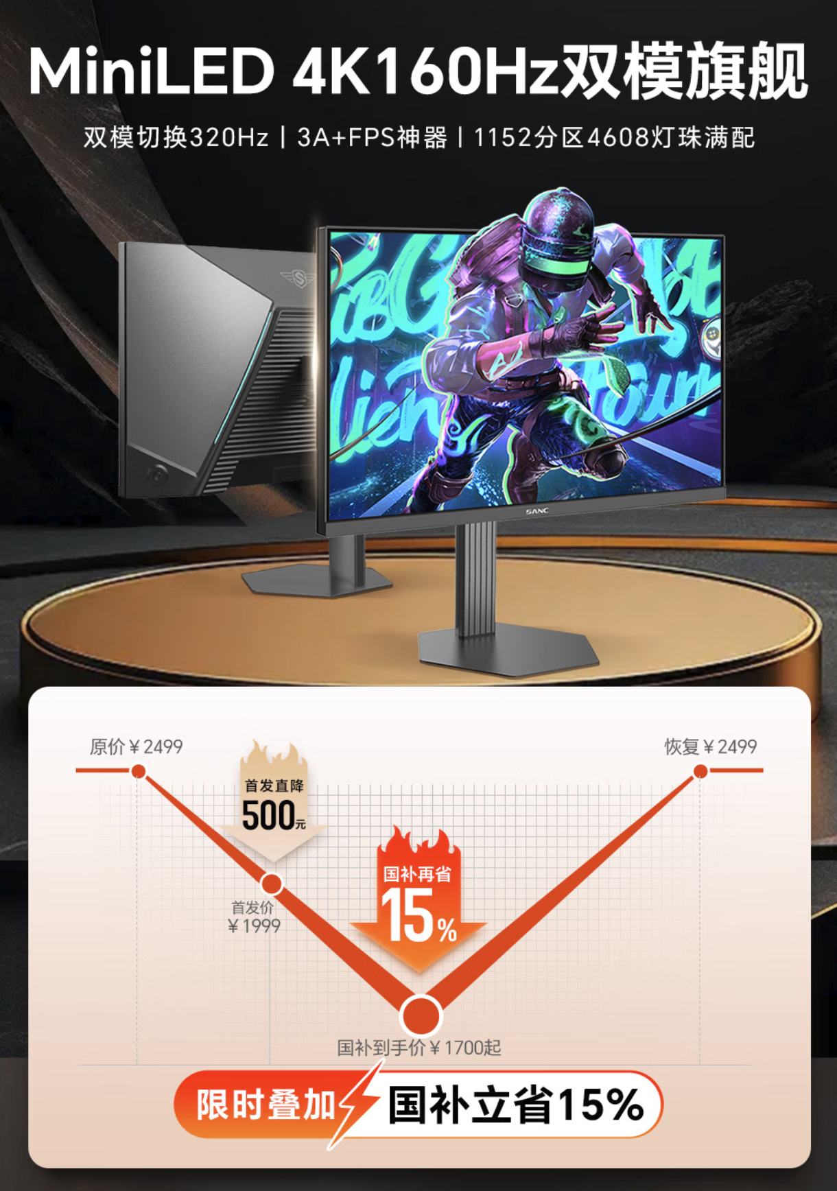 4K双模秒切MiniLED 顶配价不高 SANC DM72u