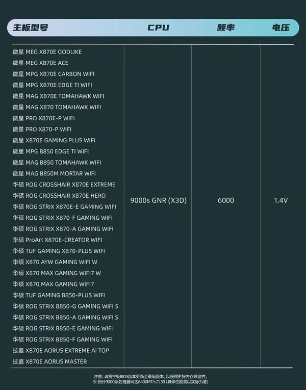 阿斯加特称,新内存重点针对AMD锐龙9000处理器做了优化适配,包括X3D系列,已在华硕、微星、技嘉的多款X870E、B850主板上通过了验证。