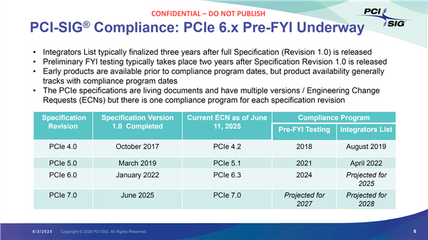目前,PCIe 7.0标准预计将在2027年完成预FYI测试,初步集成商名单预计将在2028年发布。