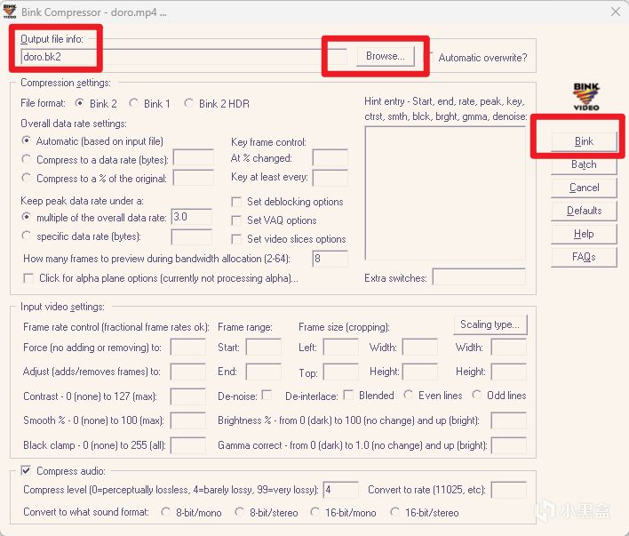 那些選項和幀率、壓縮比等等相關,有興趣可參考官方文檔的解釋 Compressing with Bink (https://www.radgametools.com/binkhcwb.htm)