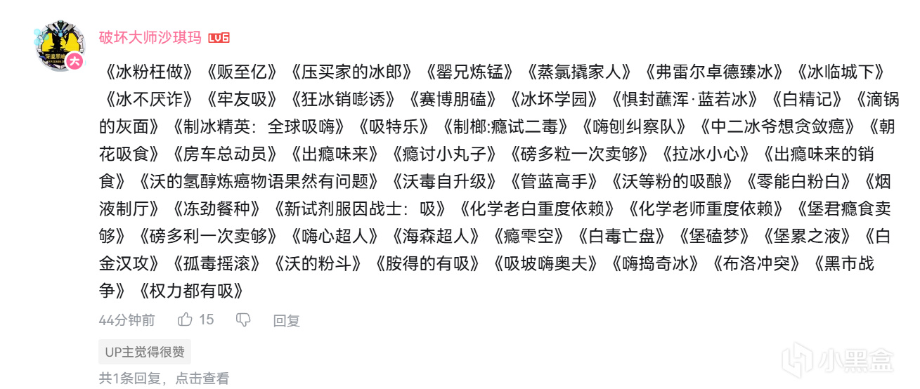 但是,如果只是使用《绝命毒师》原名的话,那么将会被b站的ai审核通过关键词直接拿下。