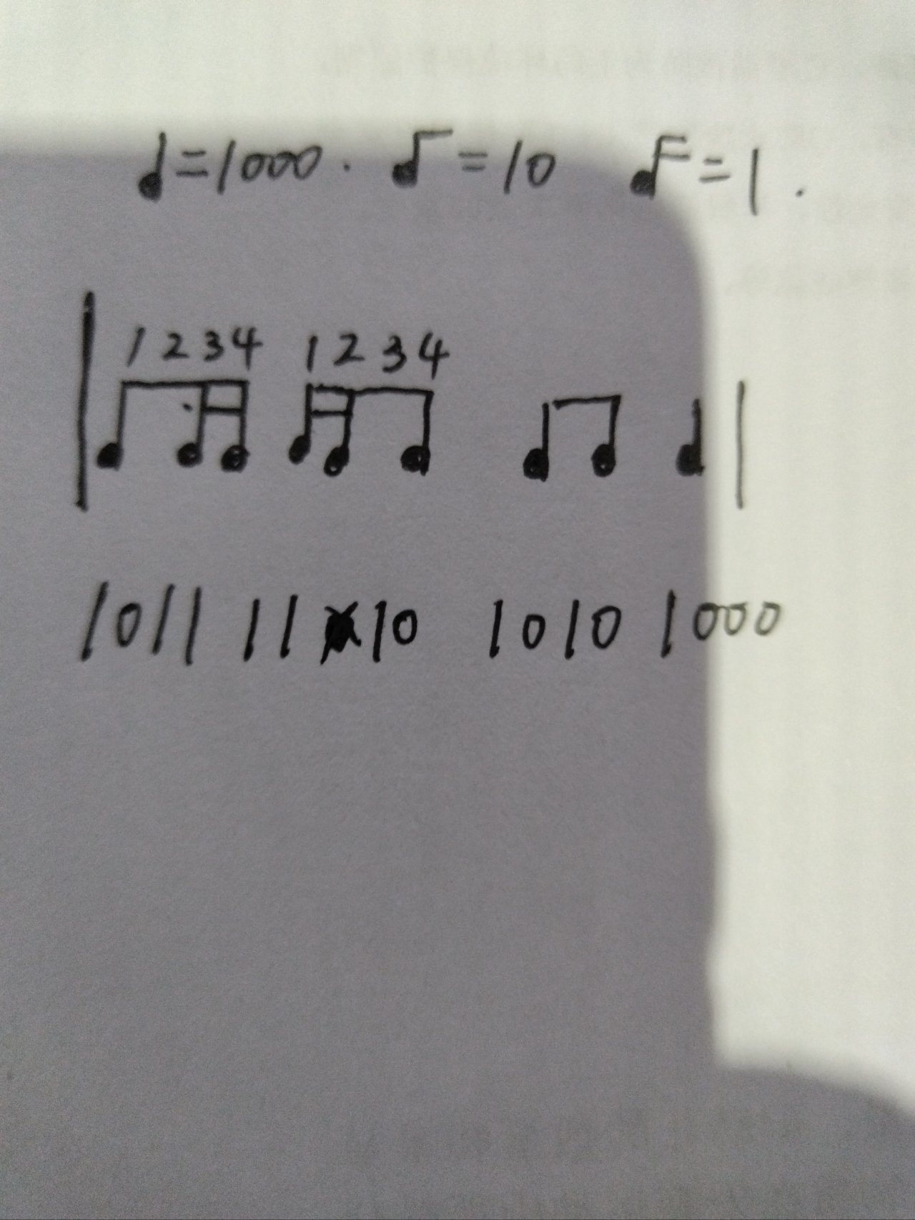 看到下面的10了吗?速度均匀的念出来,如果你能念出来,那你就能只念1,把0憋住不念,如果你能只念1,就能念“哒”那现在只要让我标注的“哒”踩在每一拍上,就可以了!