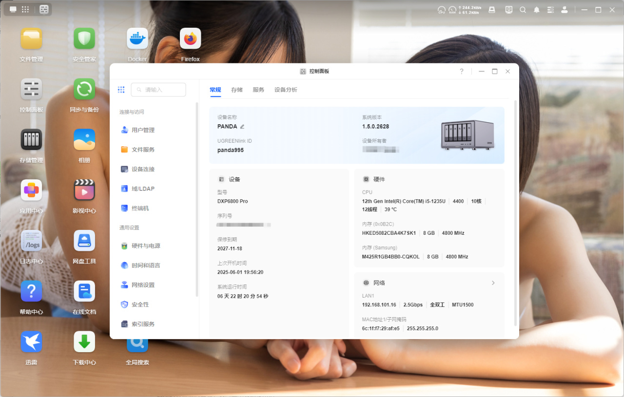 今天要使用的部署机为绿联的DXP6800 Pro,因为作为需要开服的项目,NAS自身的性能自然是不能太差才行,绿联DXP6800 Pro的处理器用得到是12代的i5-1235U,拥有10核12线程,对于人数不是特别多的情况下的游戏开服完全够用了,除此之外,DXP6800 Pro本身也带有PCIE扩展,用PCIE扩展外置显卡或者更多的内存插槽都可以。