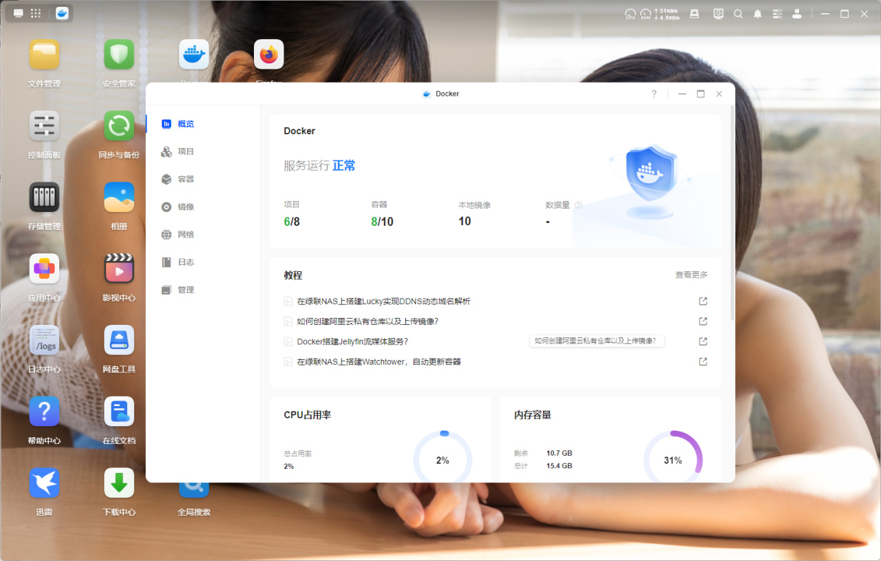 星辰游戏的部署并不难,首先我们打开绿联的Docker应用,为了后续的管理方便以及内容修改方便,这里就直接用compose进行部署了。