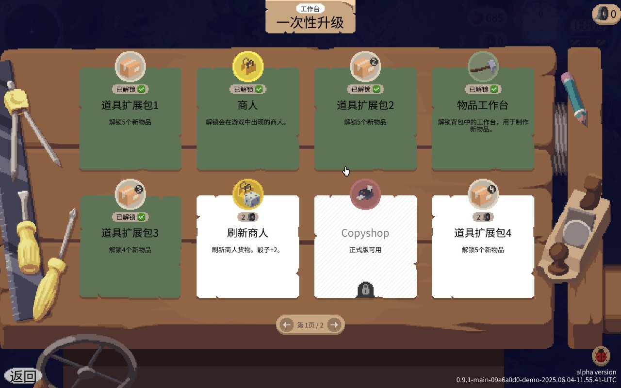 雖然demo每個角色只開放八關,但不斷有新武器、新道具添加進遊戲裏,尤其是開無雙的技能“戰鼓”。試玩版依然可以重複遊玩,點出局外養成元素,獲得新可操控角色和初始技能。