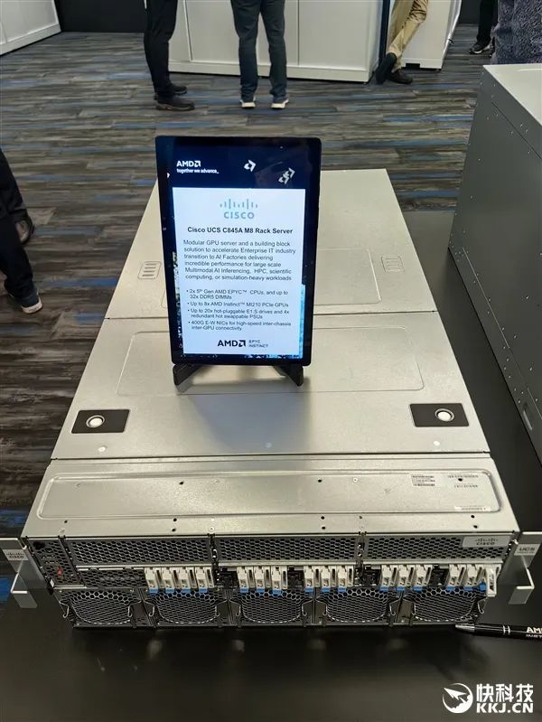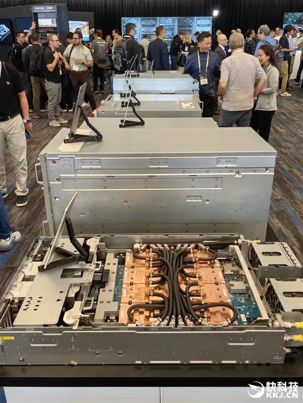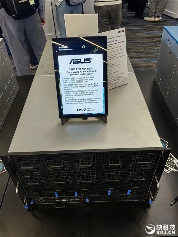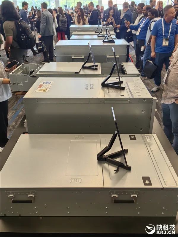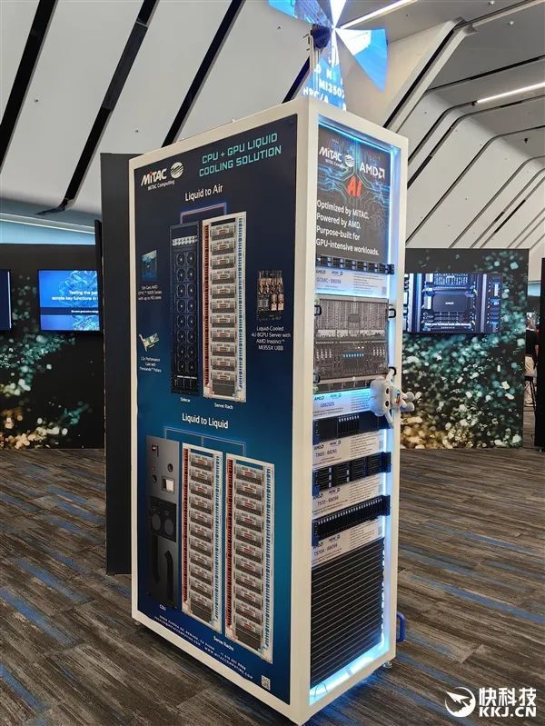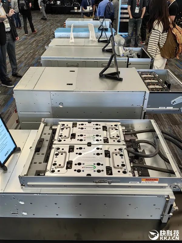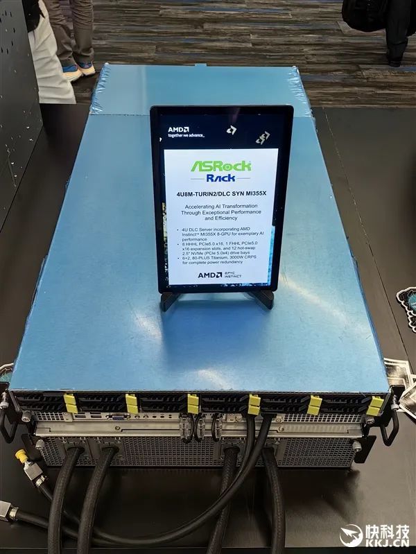 在發佈會現場,AMD與合作伙伴也展示了大量的AI服務器方案,有的已經升級到最新款MI350X、MI355X,有的雖然用的還是老一代MI300X、MI325X,但升級也很輕鬆,只是時間問題。