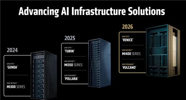 除了Instinct MI400系列加速器、Pensando Vulcano網卡,AMD明年還會推出代號“Venice”的下代EPYC處理器,升級Zen6架構。