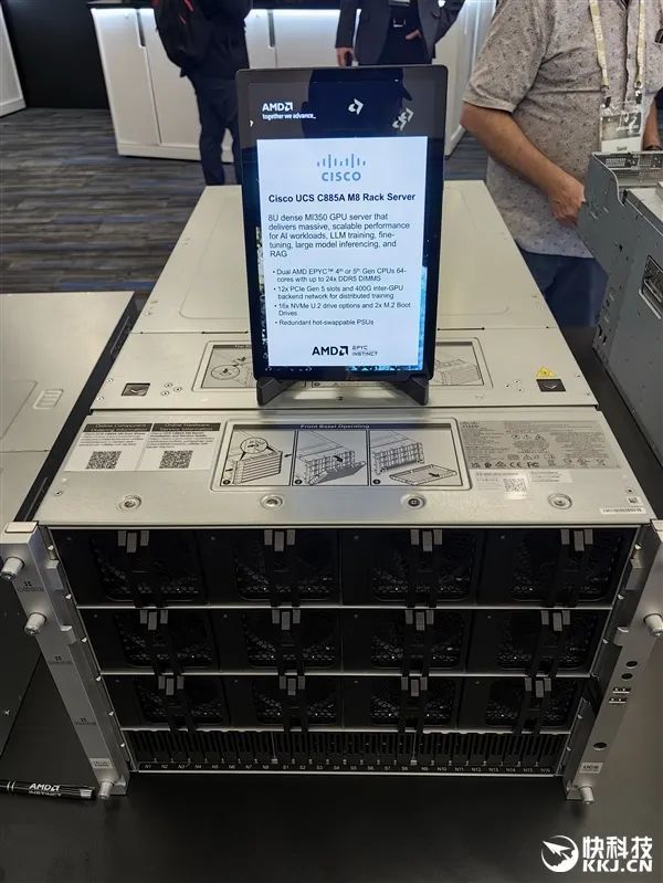 思科,8U,雙路四五代EPYC(組多64核心),12條PCIe 5.0,已適配MI350系列,24條DDR5。