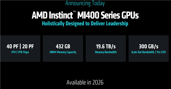 2023年的MI300X/300A,2024年的MI325X,2025年的MI350X/MI355X,2026年就是MI400系列。