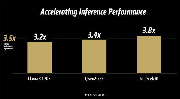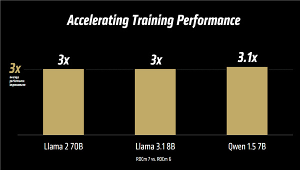 官方聲稱對比ROCm 6,實測在Llama 2/3.1、千問1.5等多個模型中,性能提升普遍達到了3倍乃至更高。