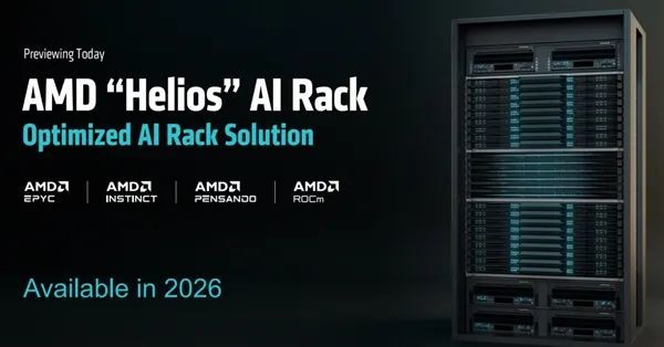 三者共同組成新的AI加速系統平臺,AMD也會推出參考設計的AI機架方案,代號“Helios”。