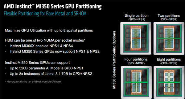 不同分區可以支持多種使用模式,但不同於前代的NSP1、NSP4,這次改爲NSP1(單個分區)、NSP2(雙/四/八個分區),看似降級了,AMD解釋說NSP4模式的性能提升其實比較有限。