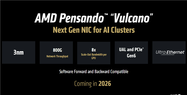 明年,AMD還將推出代號Vulcano(火山)的下一代Pensando網卡,依然符合UltraEthernet標準。