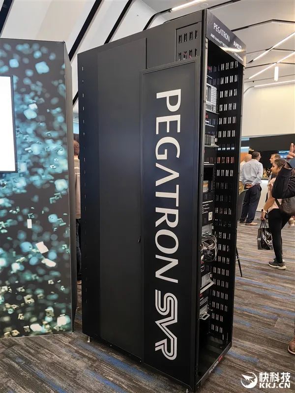神達、和碩更是拜訪了兩臺完整的機櫃,當然不是真正的產品,只是演示之用,內部安裝了多款不同型號、配置的機架服務器,神達的還可以整體液冷散熱。