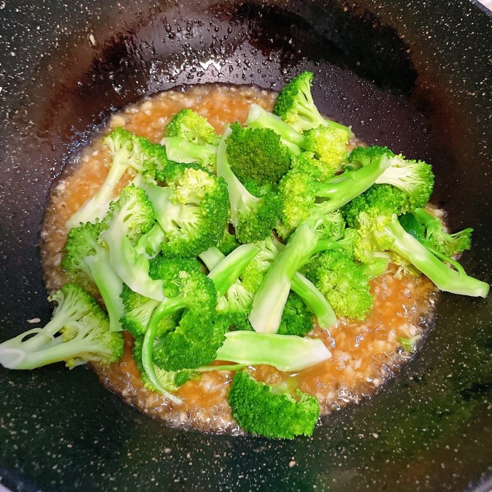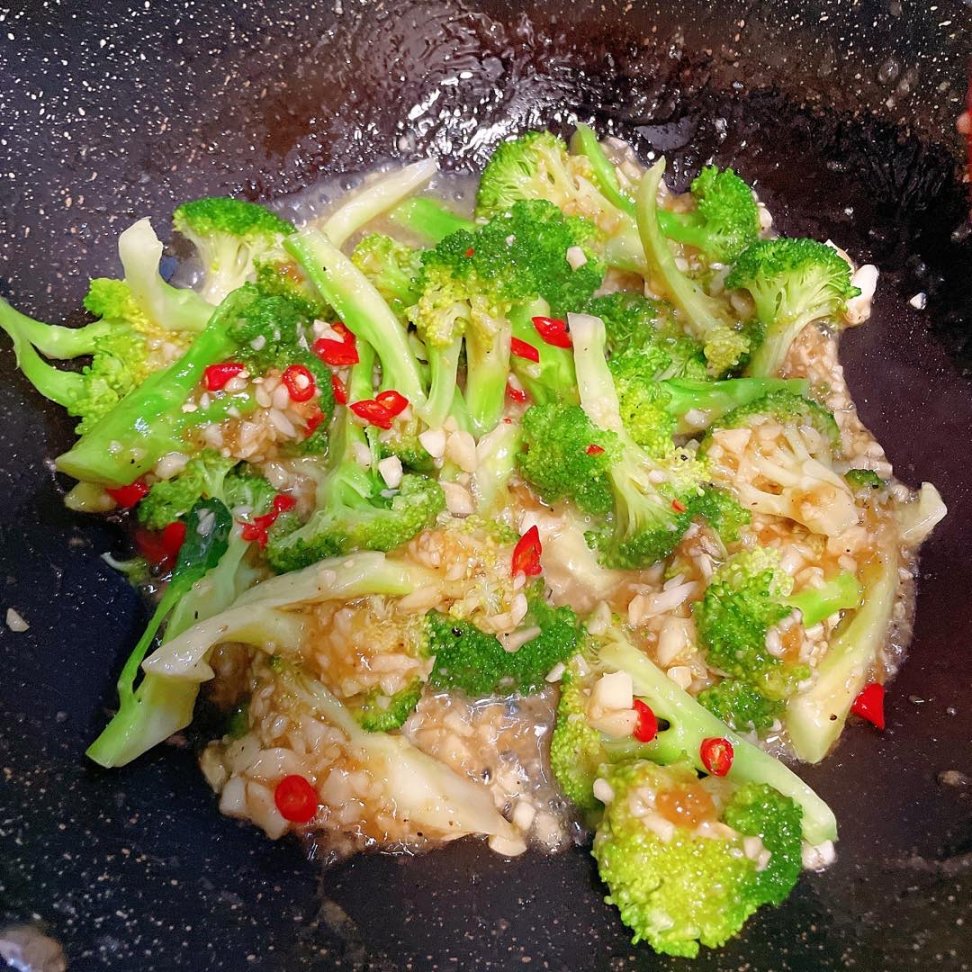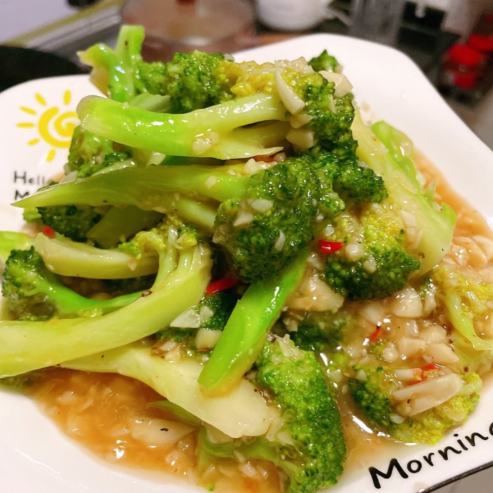 蒜要多一点这道菜才能让每多西蓝花都裹上蒜蓉酱汁(切末)小米辣也切末