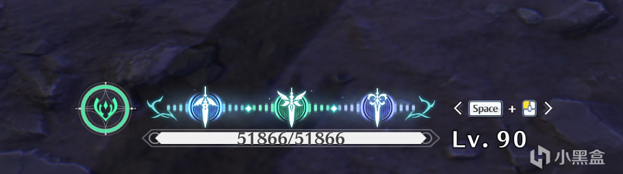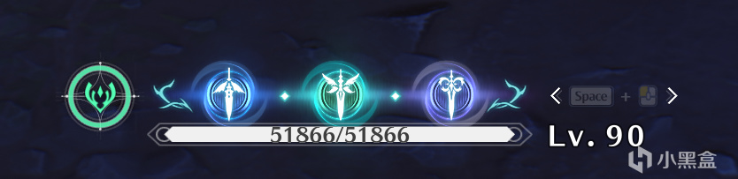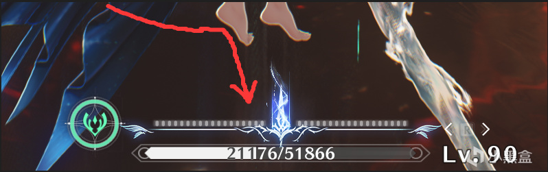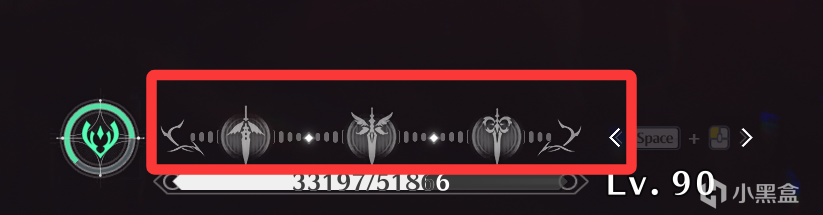 先从小卡开始,请看下图小卡的共鸣回路(就是血条上面的能量槽),上面是不是有三把剑(准确点说是剑影)的图标?