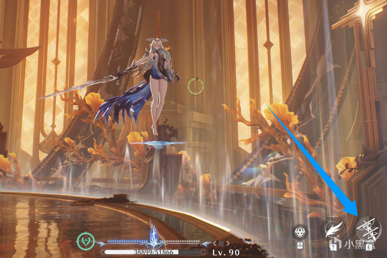 剑打出后,回收就更简单了,只需要我们进行一次空中下落攻击就能执行回收,不管场面上有几把剑,一次下落攻击都能全部回收,这点在共鸣回路上其实有标注出来。