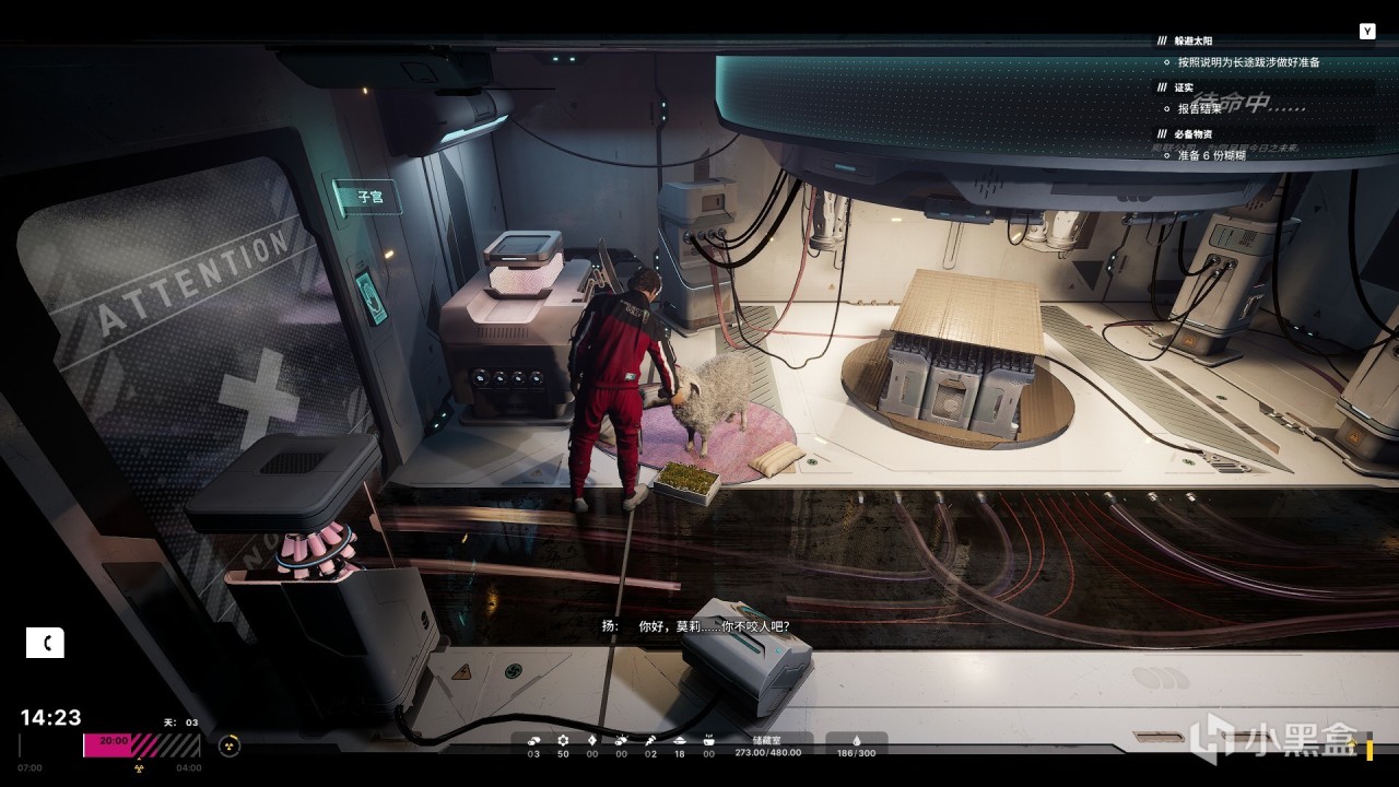 游戏性目前来玩也还好,第三人称的操作,加上飞船建造系统(类似辐射避难所),模拟类有的加速收集与制作时间流逝,以及可供选择且影响剧情的对话。
