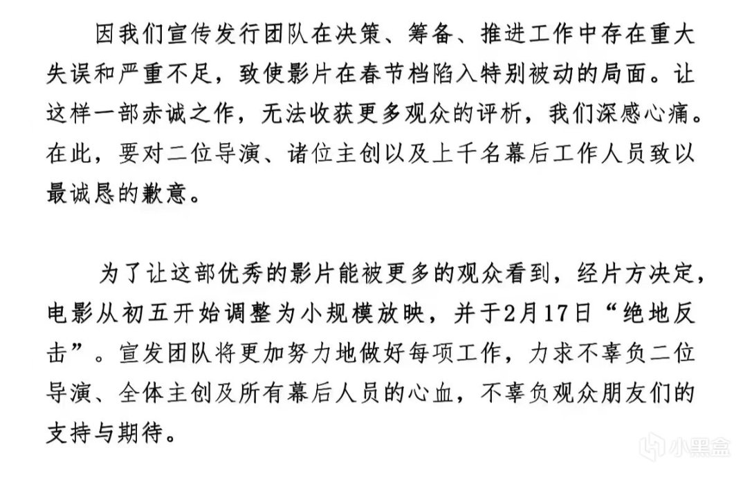 個人春節電影排名:《流浪地球2》>《滿江紅》>《中國乒乓》>《深海》>《無名》,其中質量和投入排名中游的《中國乒乓》落得血本無歸的下場,宣發,排片和質量的責任個個都少不了。目前他們已經發出聲明,將會暫時停止大規模放映,改爲2月17日再“絕地反擊”。