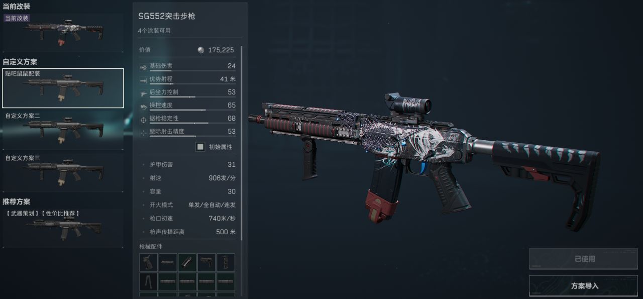 如果是5.56四级弹还在1000左右时我会和你说这是一把性价比神枪,但现在的四级弹已经涨价到了1700一颗只能说这是小丑 m枪,因为这把枪高达900的射速很容易清空弹匣还打不死人#(阴险) 这套改装主要打中近距离(75米内)可以加一个45发弹匣和增高座加个激光还有瞄准镜专门打近点当做冲锋枪用。