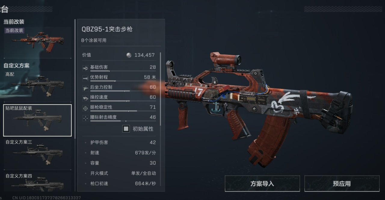 这套改装的前握把和枪托可以在军需处兑换省大约1w左右哈夫币,实际改装花费在17w左右可以稳压一百米。