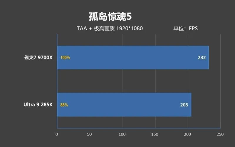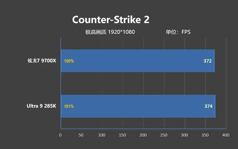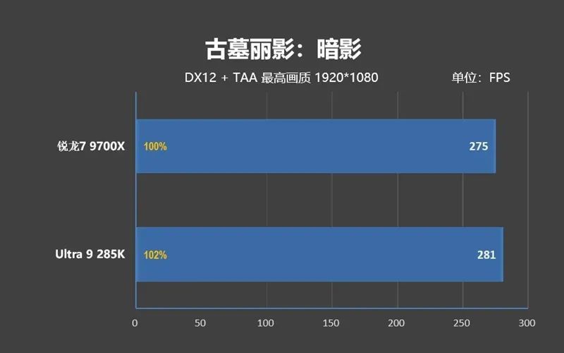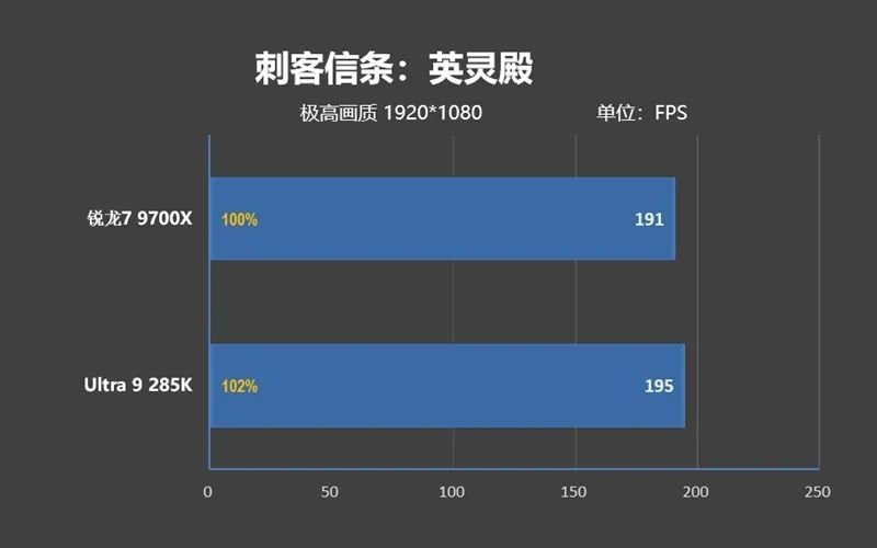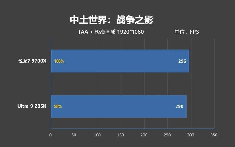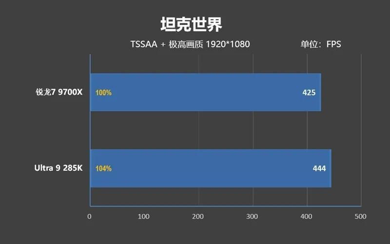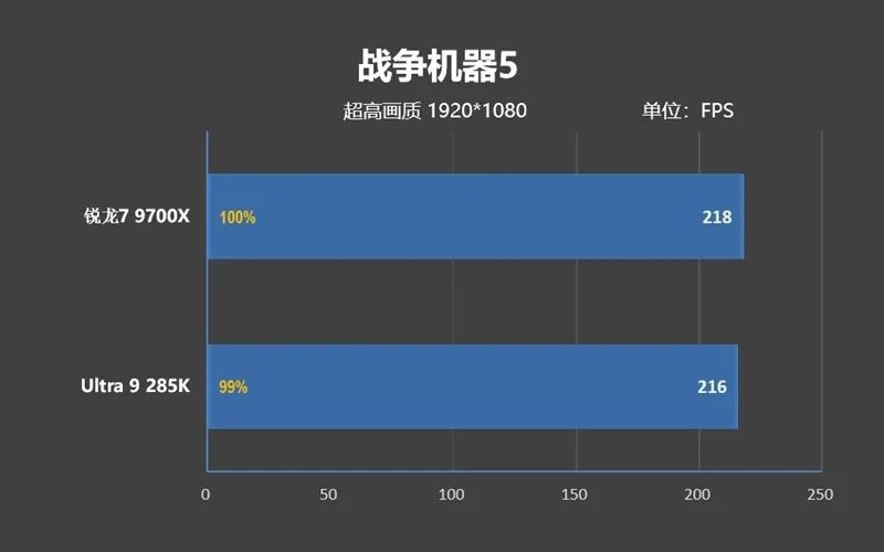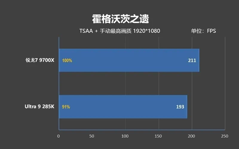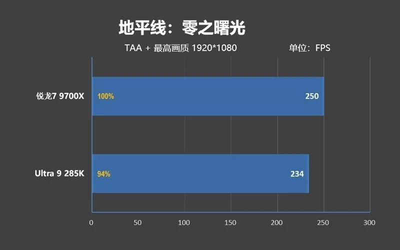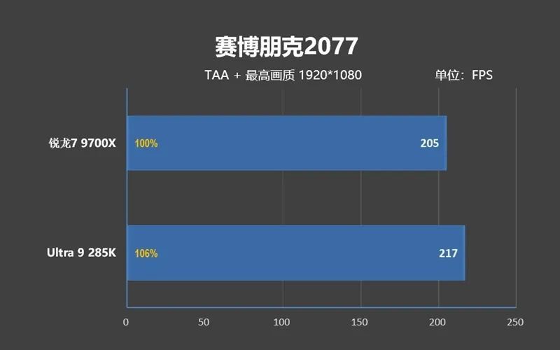 可即便如此,Ultra 9 285K的遊戲性能依舊不如銳龍7 9700X,差距是3%。