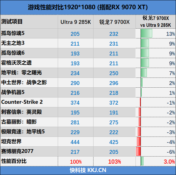 二、遊戲性能對比:銳龍7 9700X平均領先對手3%