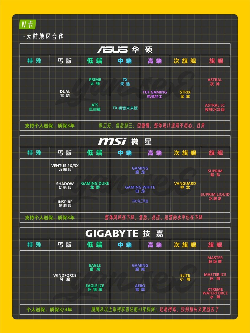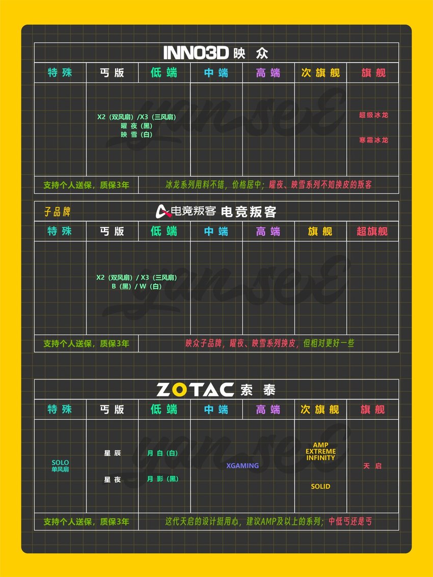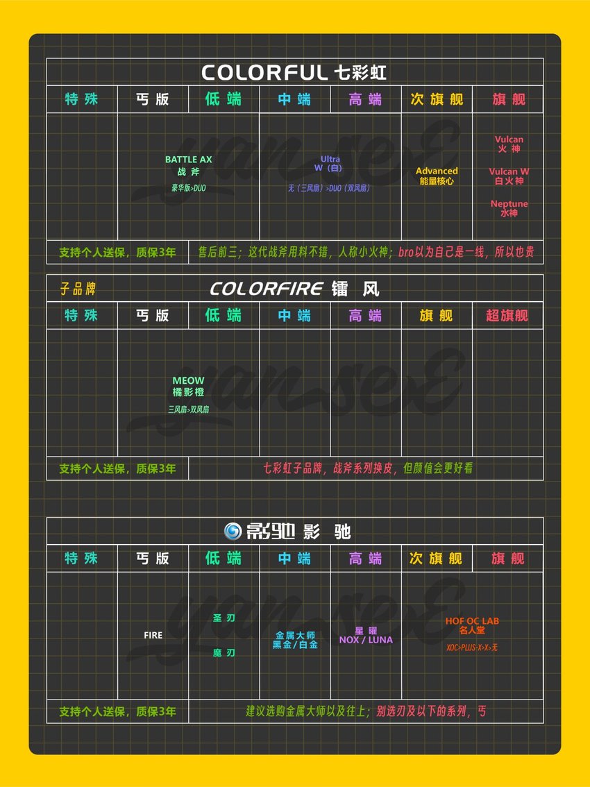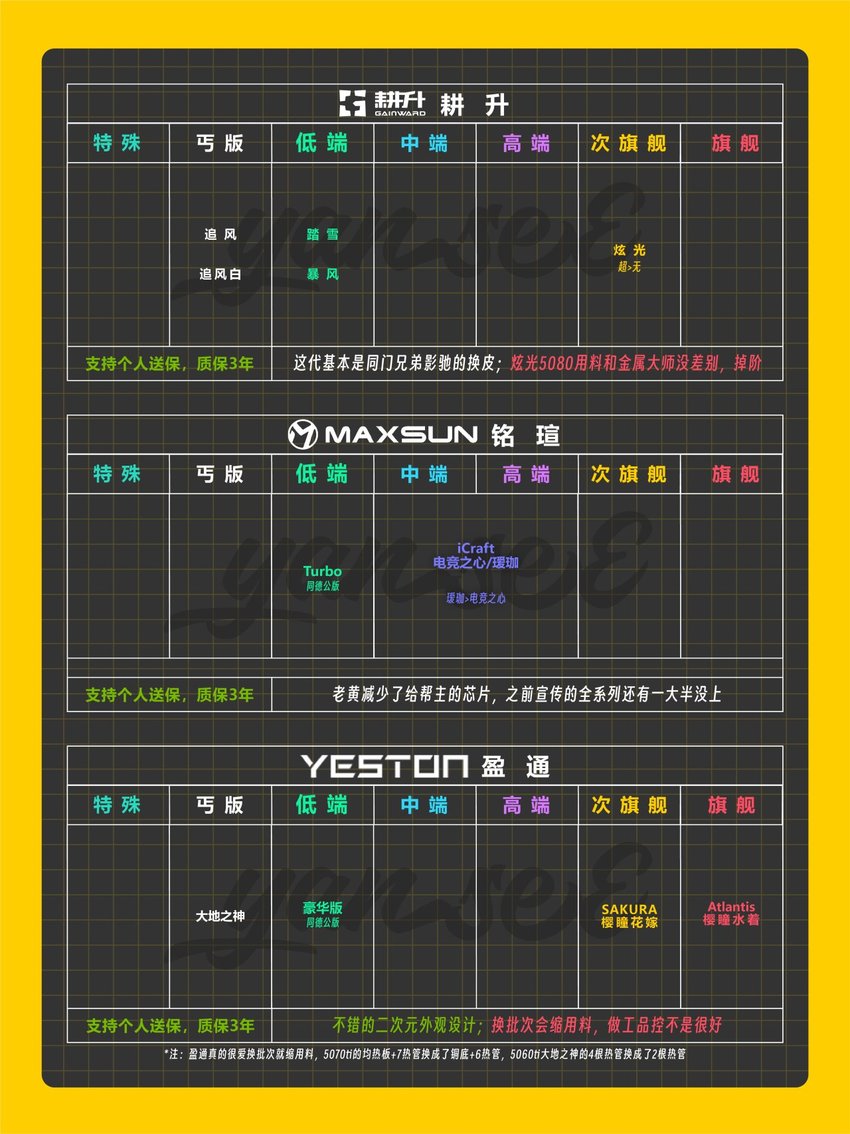 此次主要收錄50系(N卡)、9000系(A卡)、B系列(I卡)等各家新一代顯卡且在國內銷售的非公廠商品牌。帶有個人主觀性,僅供參考。