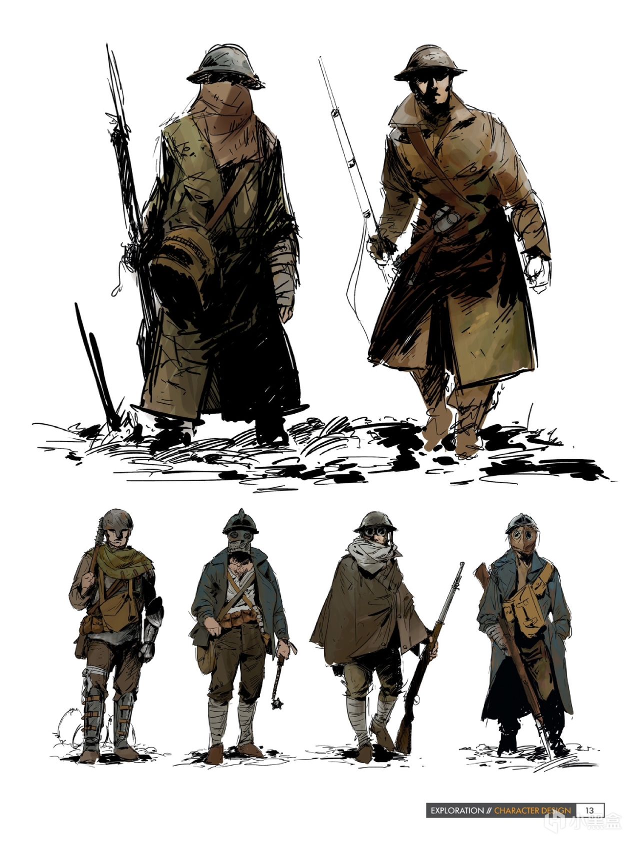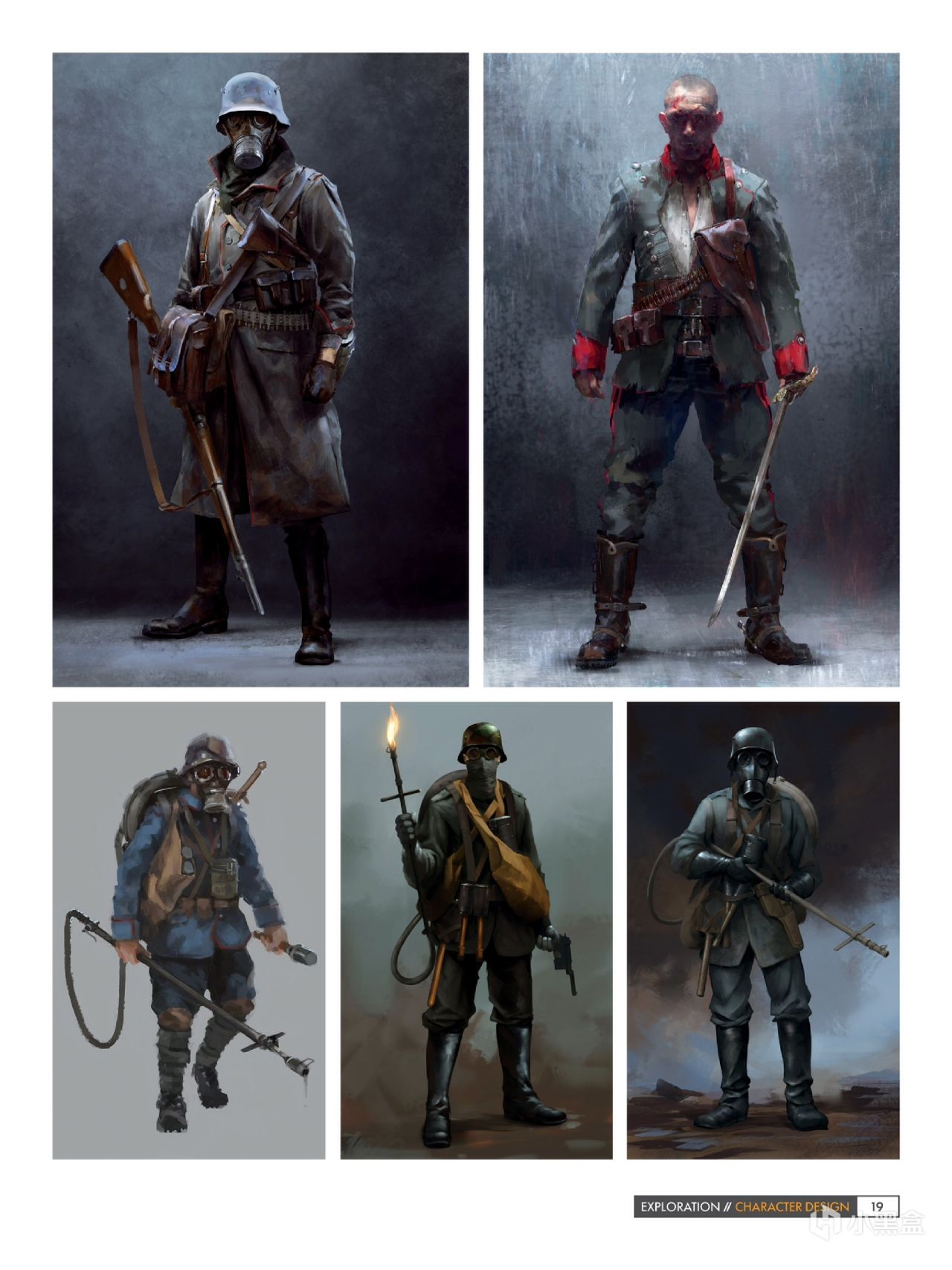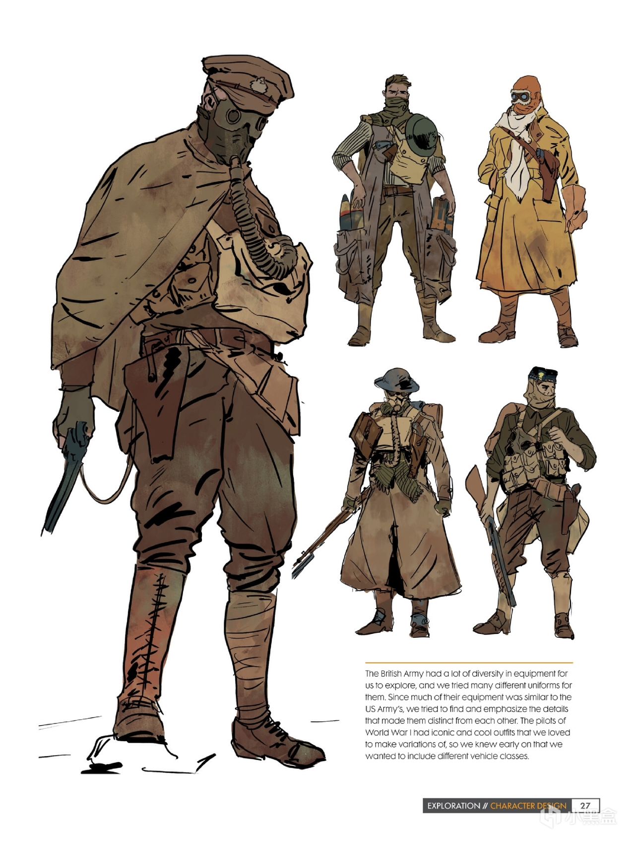 考虑到这个时代的军服总体色调在战争结束时主要偏向柔和,所以我们围绕如何通过角色形状和轮廓来区分国家和军阶进行了很多讨论。我们还希望外貌设计保持早期战地中的形象(这里说的应该是最早那几部战地)以确保游戏对老玩家来说有熟悉感,尽管游戏已经不同了。