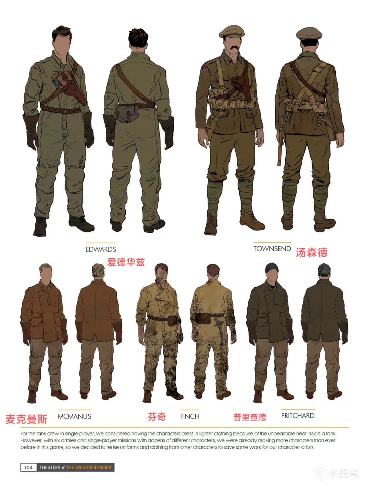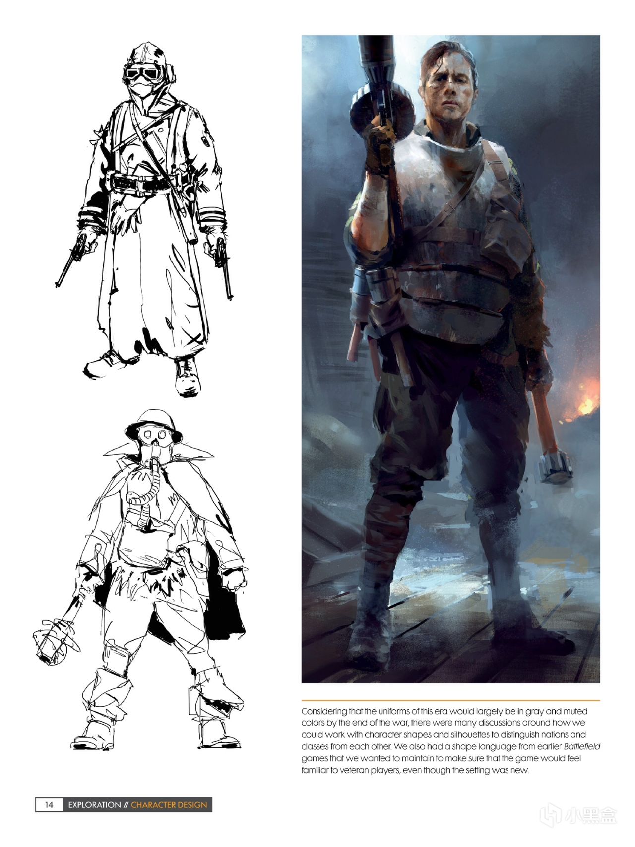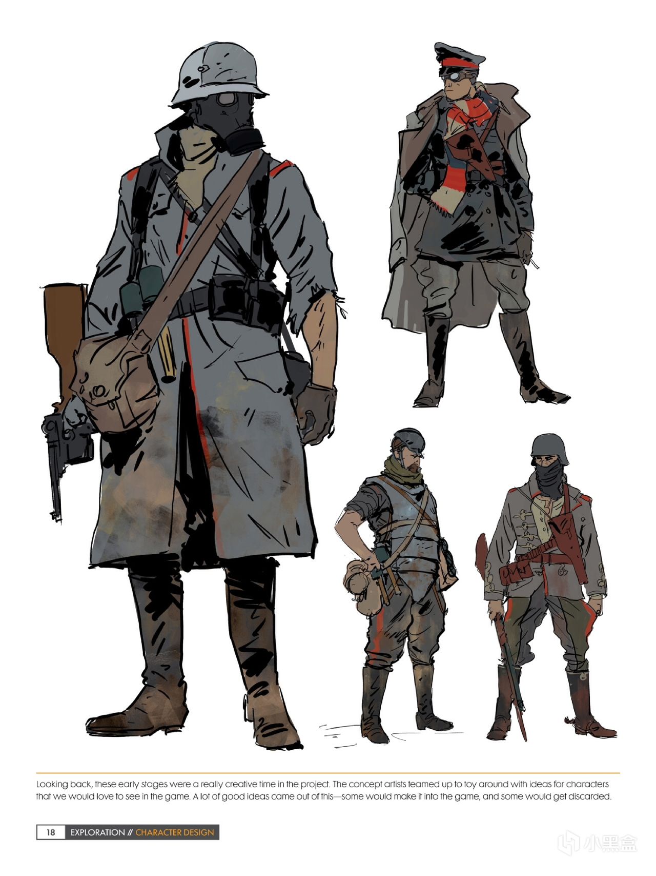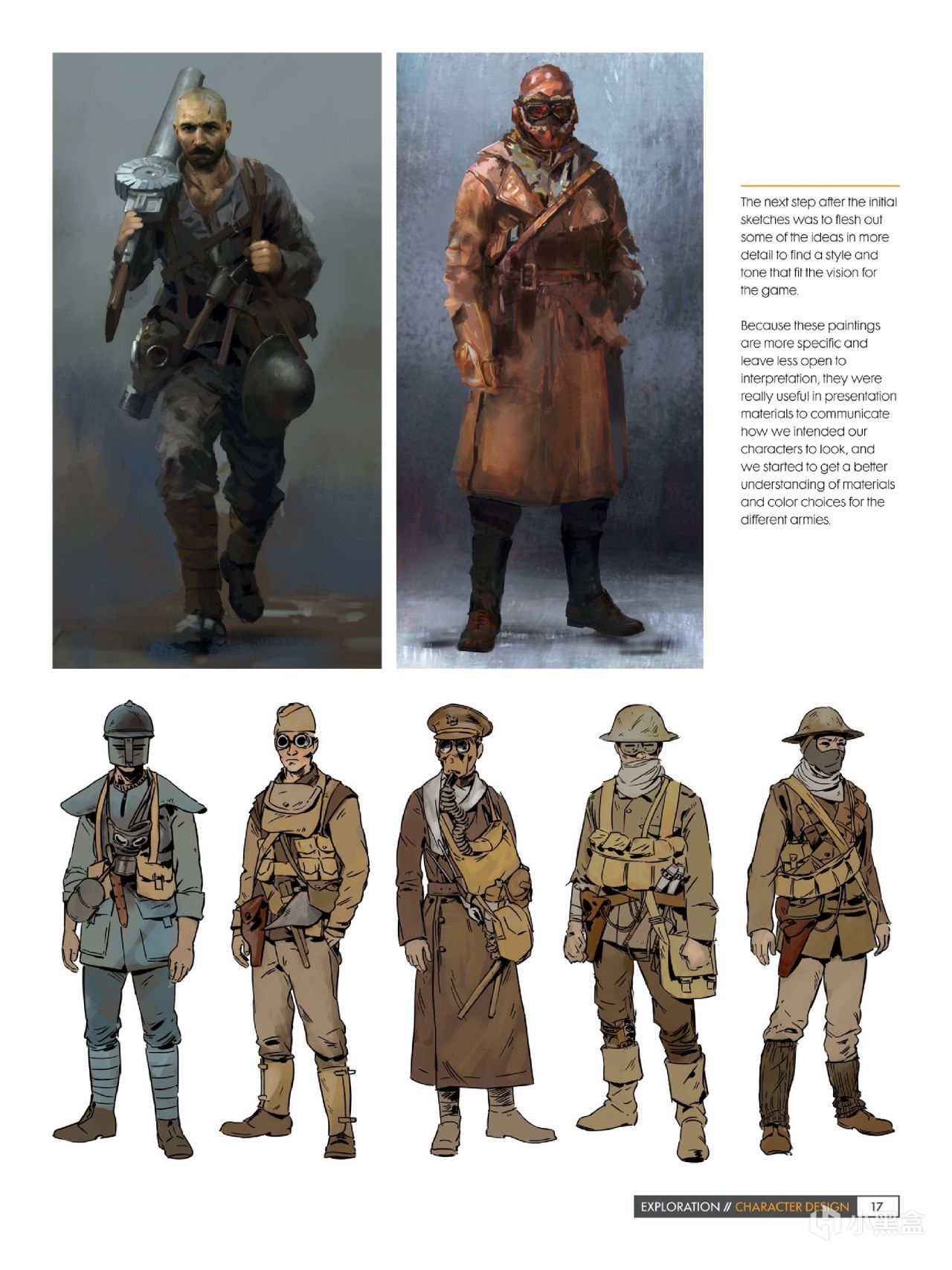 考虑到这个时代的军服总体色调在战争结束时主要偏向柔和,所以我们围绕如何通过角色形状和轮廓来区分国家和军阶进行了很多讨论。我们还希望外貌设计保持早期战地中的形象(这里说的应该是最早那几部战地)以确保游戏对老玩家来说有熟悉感,尽管游戏已经不同了。