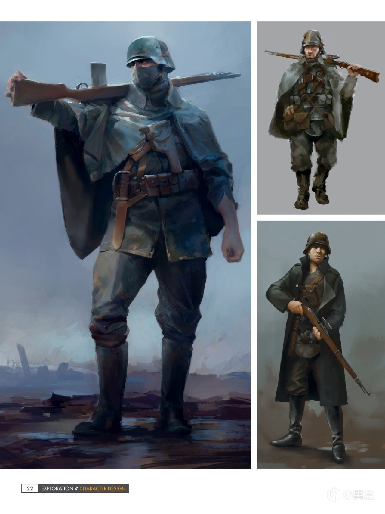 因为这些画作更具体,留给解释的空间较小,所以在展示材料中非常有用,用来传达我们希望角色呈现的样子,并且我们开始对不同军队的服饰材料和外观颜色有了更好的理解。
