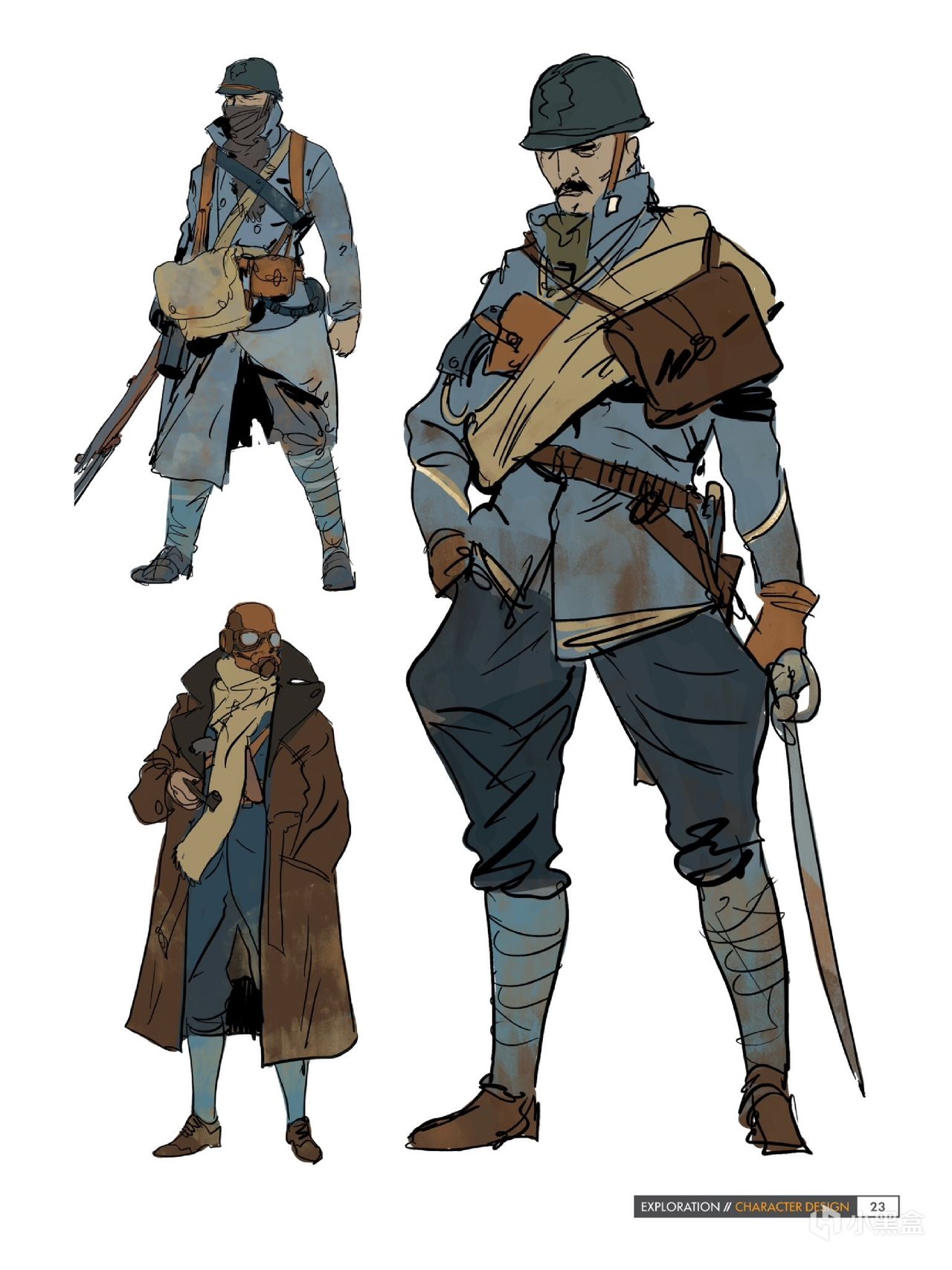 早期法军设想(战地一法军首发时并没有加入游戏,后面法军dlc出之后才进行实装,而设定集发行时此dlc还未推出)