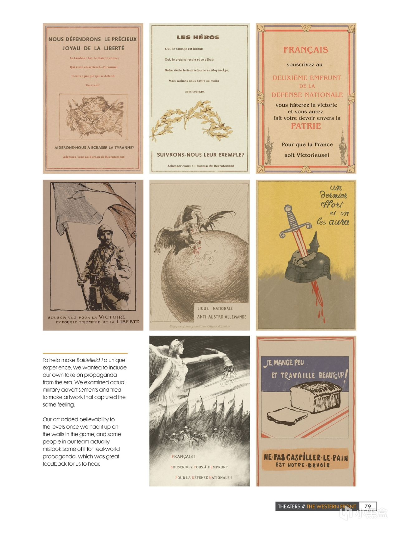 为了让《战地》系列成为独一无二的体验,我们希望融入那个时代独特的宣传风格。我们研究了真实的军事广告,并尝试创作能捕捉到相同氛围的艺术作品。 当这些艺术作品在游戏中被挂上墙壁后增添了很多真实感。团队中的一些人甚至误以为其中部分作品是真实的宣传材料,这对于我们来说是极好的反馈。