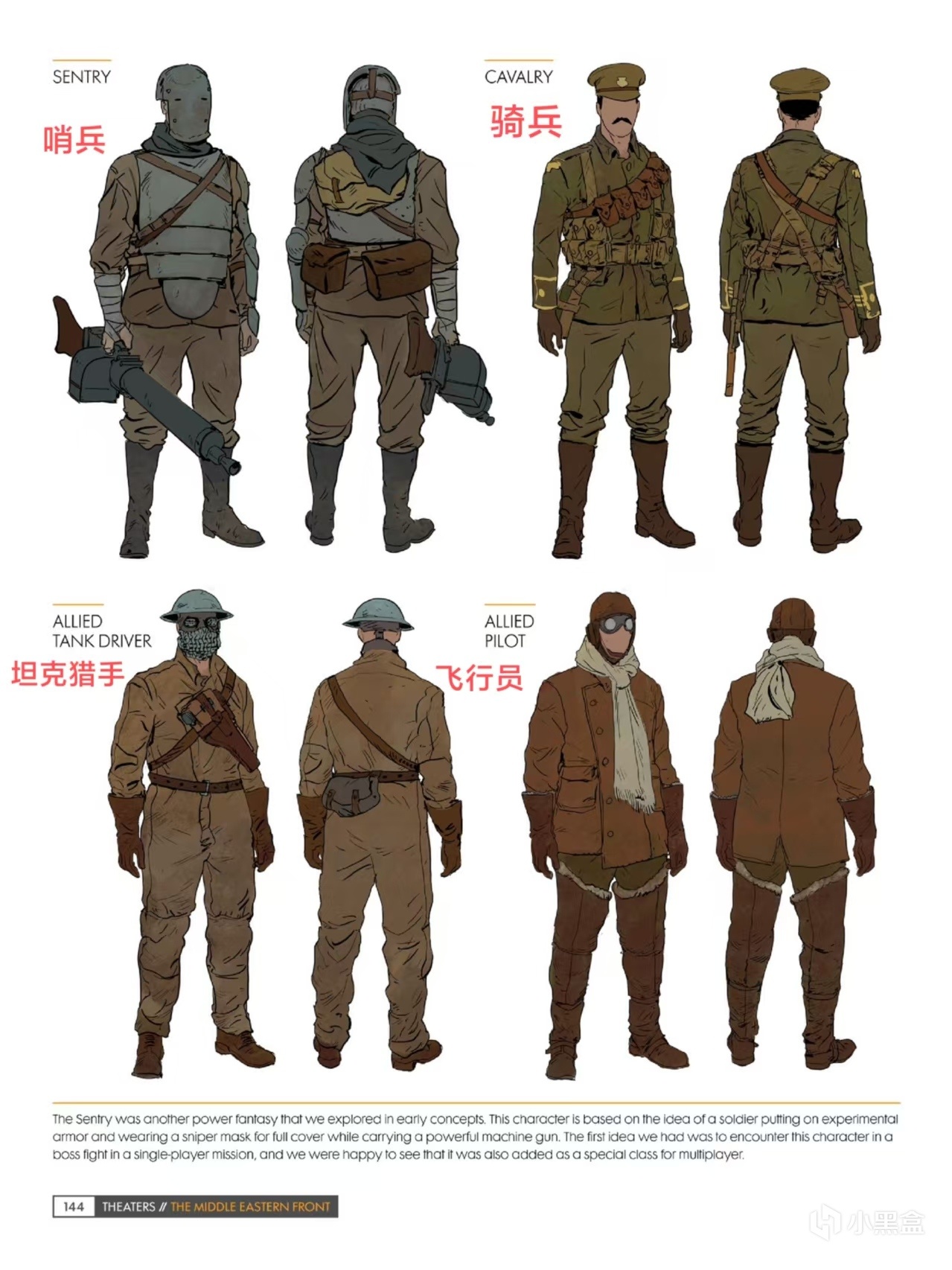 英国军队有很多不同的装备供我们探索,我们尝试了许多不同的制服。由于他们的许多装备与美国军队的相似,我们试图找出并强调使它们彼此不同的细节。第一次世界大战的飞行员有标志性和酷炫的服装,我们喜欢制作各种变体,因此我们很早就知道我们想要不同的载具外形。