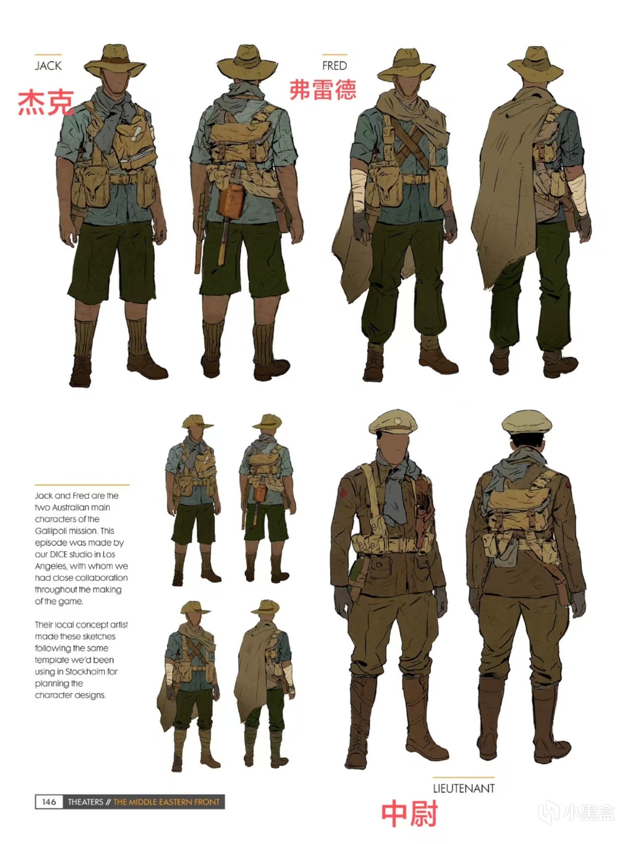 杰克和弗雷德是 《加里波利任务》中 两位澳大利亚主要 角色。这一章节由DICE工作室在洛杉矶制作,我们与他们在游戏制作过程中保持了紧密合作。他们的本地概念艺术家根据我们在斯德哥尔摩用于角色设计规划的一个模板制作了这些草图。