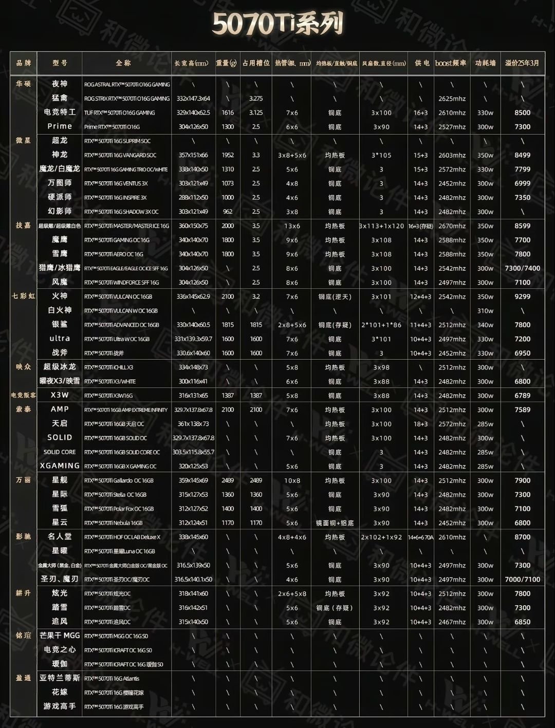 ➡问题6∶显卡5070ti与5080的用料以及价格?
