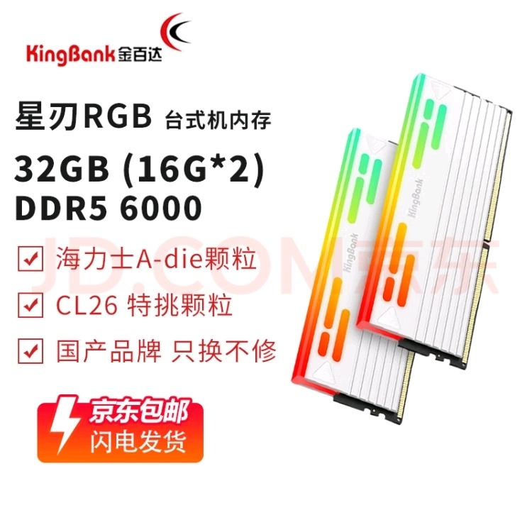 - 金百达星刃6000MHz C28 32GB×2:性价比高,采用海力士ADIE颗粒,散热和超频能力优秀,适合游戏和日常使用。