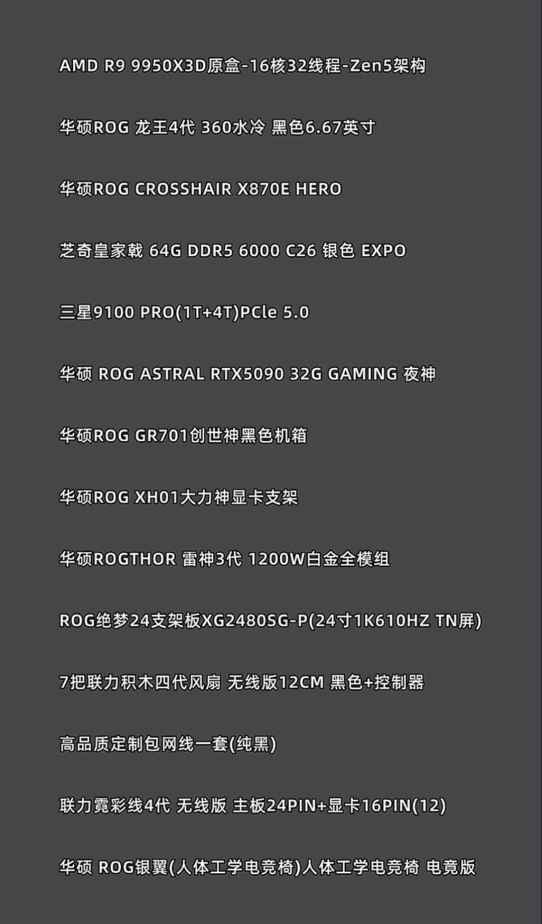 - 9800X3D:风冷选NH-D15 G2,水冷选240一体式(如澈TS1)。