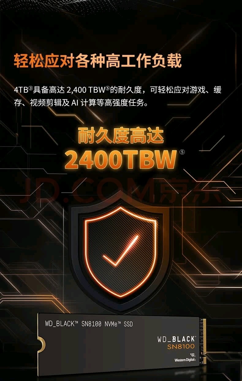 - WD_BLACK SN8100(2TB):顺序读取速度高达14900MB/s,顺序写入速度为14000MB/s,适合高性能需求。采用慧荣SMI SM2508主控,6nm制程,支持8通道传输,性能强劲