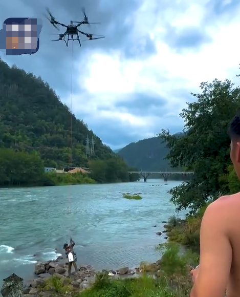 据说,这台无人机的起飞重量是150公斤,从起飞到安全救回钓鱼佬只花了2分多钟。