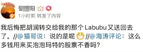 事情是这样的,前段时间,有人送给张总一个绝版Labubu,但是张总大概是没看上,就给人还回去了。