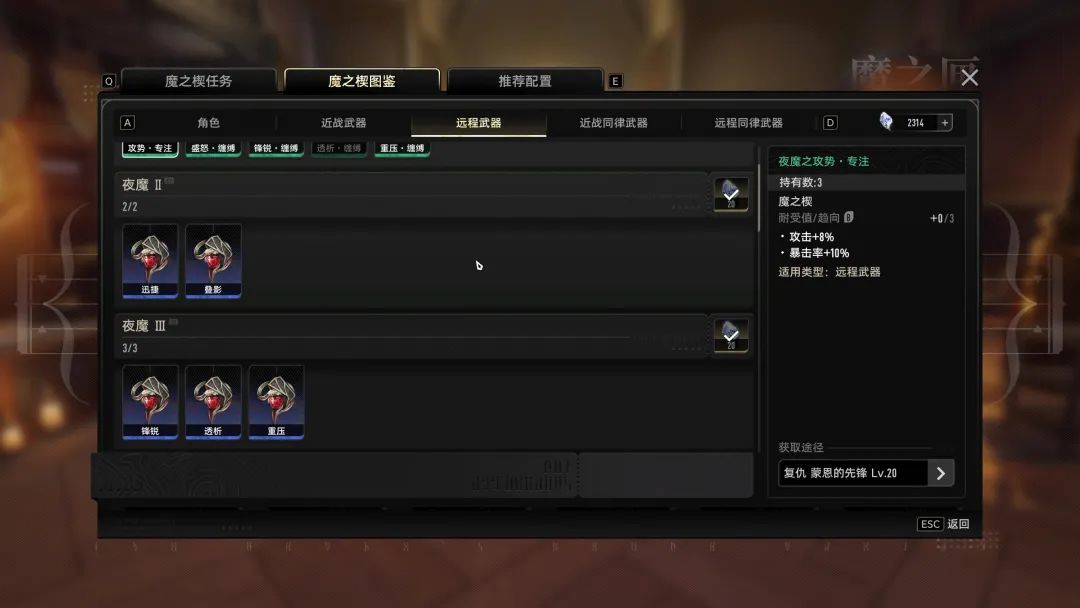相比上一輪測試,此次的“致明日測試”增加了魔之楔手冊,讓魔之楔的獲取路徑與收集進度,都更加直觀且方便。不但當前等級解鎖了哪些魔之楔一清二楚,就連是從哪刷出來的,都寫的明明白白。