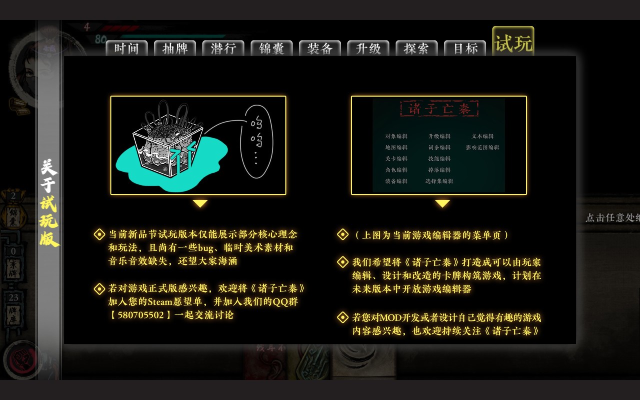 正如前文所述,《诸子亡秦》相比较其他肤浅的类尖塔“妖艳贱货”相比,有着一套独特的核心玩法——独特到让刚接触本作的玩家可能会有些一头雾水,即便是我这样自诩“尖塔老白”、能轻松上手任何肉鸽卡牌的玩家面对本作也花了半个多小时摸索玩法。