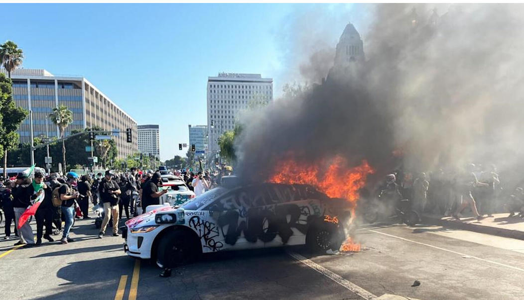 一些Waymo无人出租车被涂鸦并烧毁(新闻图片)