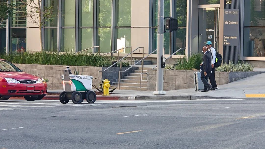 换个相对平静一些的街区,就好像只有在自动快递机器人身上的涂鸦,才能看到骚乱留下的影子