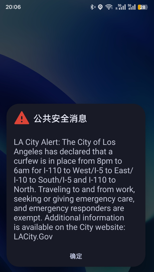 到我准备离开洛杉矶的前一天晚上,我的手机突然响起警报——洛杉矶市区地段从当晚开始施行宵禁,甚至连酒店的电梯也在当晚停了。