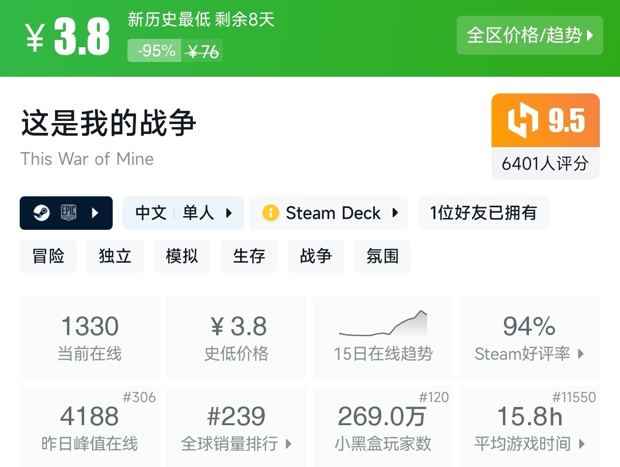 多款史低新史低!Steam6月15日12款一折游戏汇总