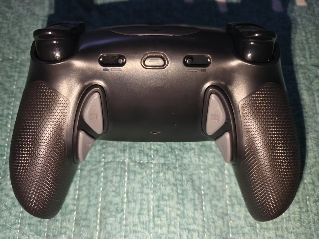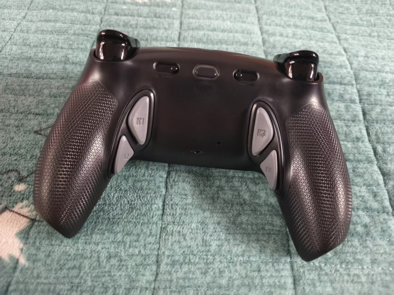 在按鍵方面,DS5手柄既有一定的優勢,也有一些不足。比如無人機掃描鍵,其他手柄是“-”鍵,不僅小,而且還需要用左手操控,簡言之,想要進行掃描的話必須要先鬆開移動搖桿,而DS手柄就沒有這種煩惱,掃描鍵直接設置在了手柄的正中間,不管是用左手還是右手都能輕鬆觸碰。但是《劍星》這款遊戲需要操作的按鍵較多,比如前期的格擋反擊就需要同時用到“△”和“□”鍵,但用大拇指按的話很容易按不出來,這時候備件的優勢就體現出來了,但是原廠的ds5手柄並沒有背鍵,爲此,幻刃特意加裝了兩組背鍵,並且設計的位置符合人體工學,按起來恰到好處,這也極大的降低了遊戲的操作難度。